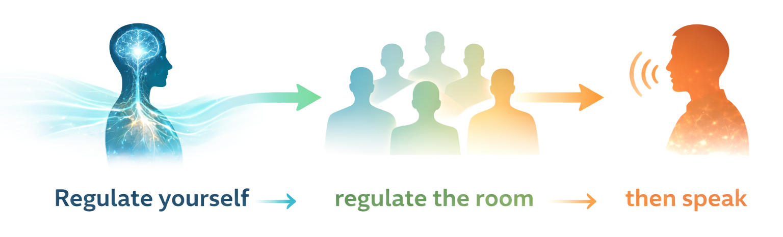 When leaders follow this sequence, difficult conversations land more effectively, teams feel safer, and culture shifts. Regulation creates workplaces where clarity increases, conflict decreases, and psychological safety becomes the norm.